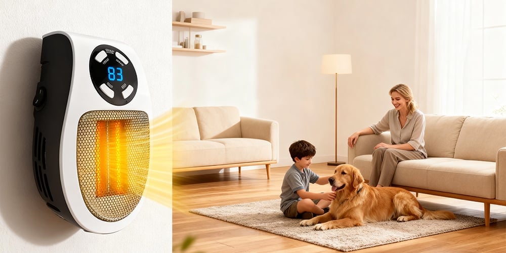 - 🛡️ Safety-First Engineering: Floor heaters are a hazard for kids and pets. AeroWarm™ mounts securely to any wall outlet, keeping the heat source elevated and away from curious hands or paws.